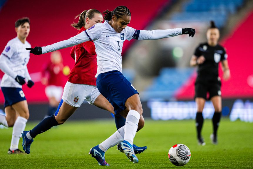 A França visitou e venceu a Noruega por 2-1 no jogo da terceira jornada do grupo 2 da Liga das Nações. As francesas começaram a ganhar aos 23 minutos, devido a um autogolo de Maren Mjelde. Lund ainda empatou para as anfitriãs aos 60', mas Renard confirmou, nove minutos depois, o resultado final.