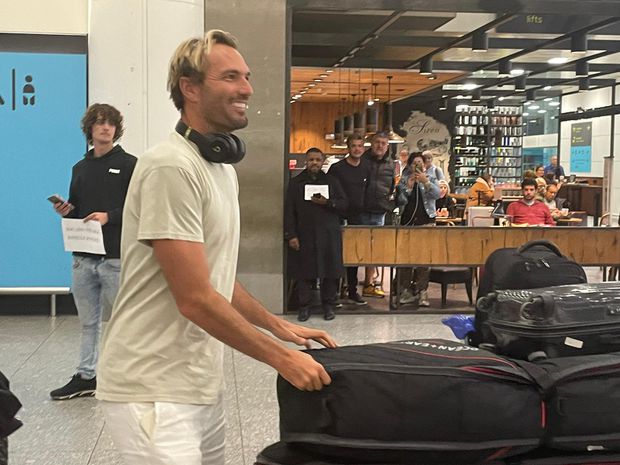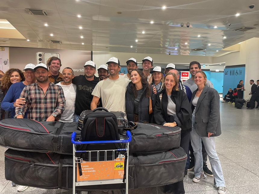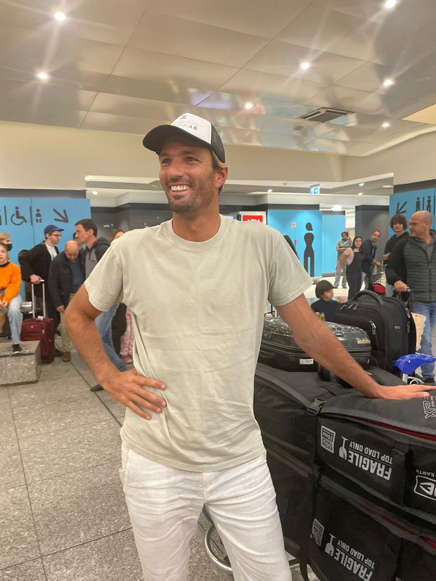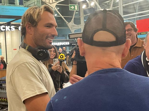 Vindo de Paris, aterrou ao final da tarde este domingo no Aeroporto Humberto Delgado, em Lisboa, acompanhado por um conjunto de pranchas de boas memórias. À espera, o pai, a mulher, familiares, o agente e um grupo chegado de amigos saudaram o surfista de 31 anos. Todos de chapéu preto com a inscrição: Back on tour #Kikas (De volta ao Circuito #Kikas).