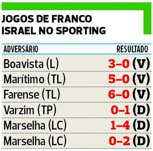 Ainda assim, Franco Israel já teve algumas oportunidades para jogar de leão ao peito, mas só uma delas para a Liga, diante do Boavista (ver quadro em anexo).
