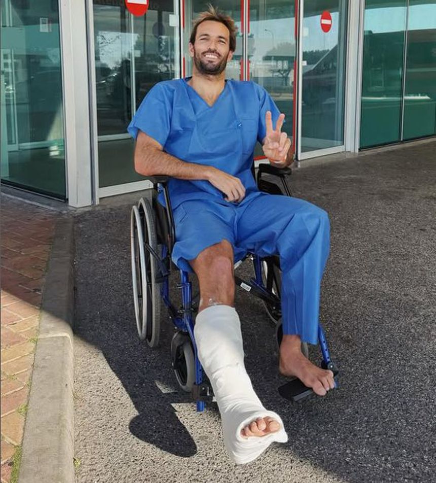 «A caminho do hospital para a minha primeira cirurgia... aconteceu há dois dias a surfar! Fratura com luxação do tornozelo (articulação tibiotársica)», escreveu no Instagram o surfista português.