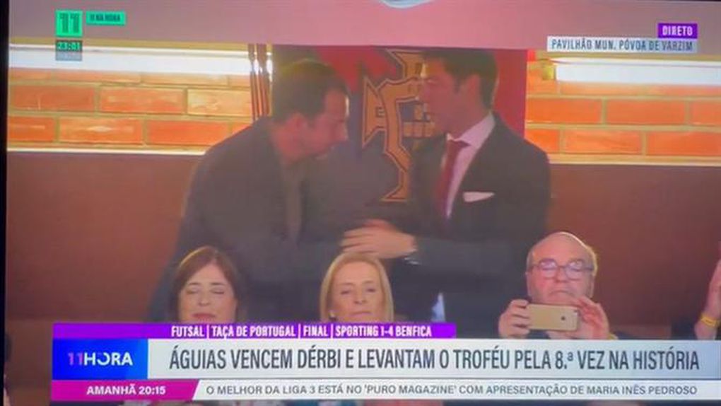 Presentes estavam os presidentes dos dois clubes - bem como o presidente da FPF, Fernando Gomes - e a transmissão do canal 11 apanhou o momento em que Frederico Varandas cumprientou Rui Costa, num verdadeiro gesto de fair-play, quando o Benfica recebeu o troféu.