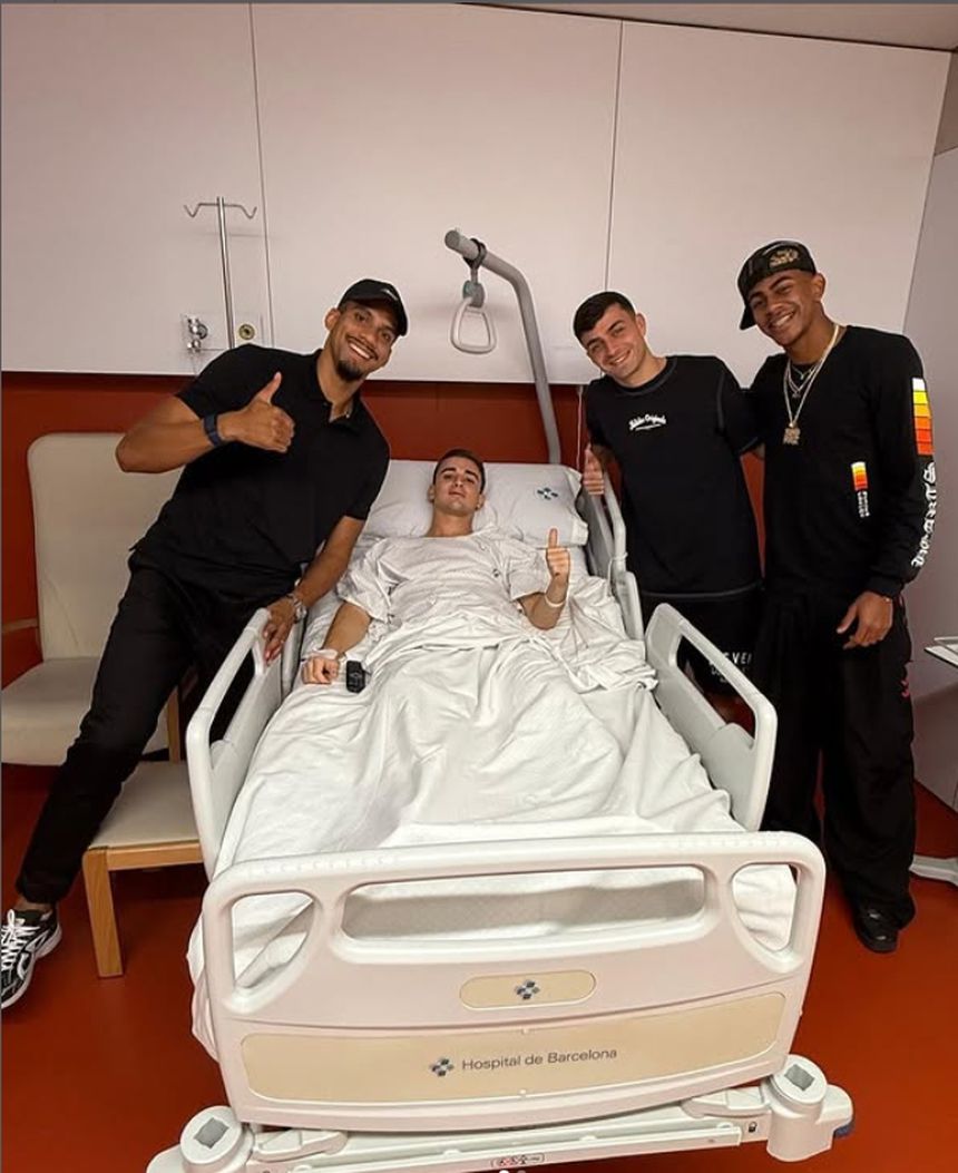 Gavi publicou uma fotografia no Instagram onde aparece com Lamine Yamal, Ronald Araújo e Pedri, que o acompanhavam junto à cama.
