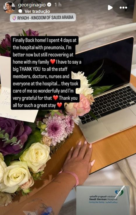 A parceira de Cristiano Ronaldo descreveu a situação nas redes sociais e agradeceu o apoio de todos os funcionários no hospital saudita.