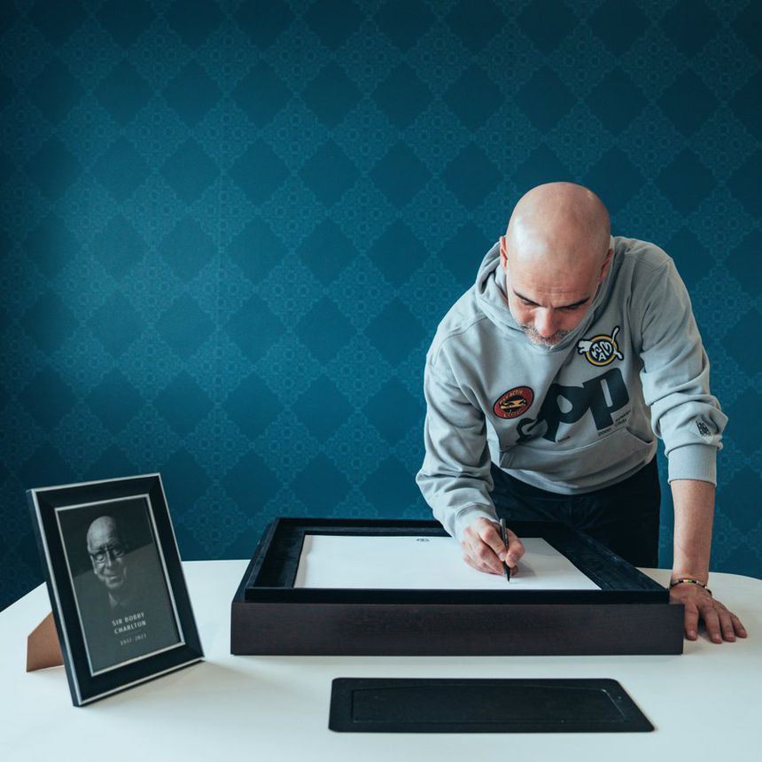 Apesar da rivalidade dentro de campo, Man. United e Man. City mostraram união esta sexta-feira, a dois dias do dérbi de Manchester. O momento foi protagonizado por Pep Guardiola, que não quis deixar de homenagear Sir Bobby Charlton, assinando o livro de condolências da antiga glória dos red devils, do futebol inglês e mundial.
