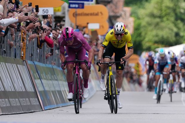 Superado ao sprint por Mads Pedersen na inclinada reta da meta da 13.ª etapa da Volta a Itália, esta sexta-feira, Wout van Aert teve de se contentar com o segundo lugar, atrás do dinamarquês, que já soma quatro vitórias nesta edição da corsa rosa.
