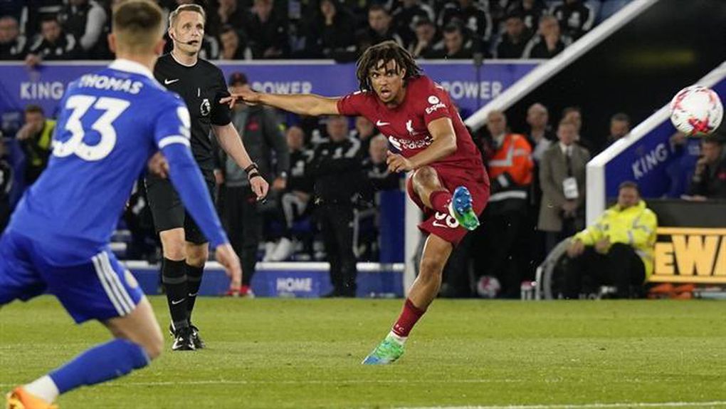 Na cobrança indireta de um livre, e após um pequeno toque do egípcio Mohamed Salah, o médio inglês Alexander-Arnold assinou na noite desta segunda-feira, no King Power Stadium, diante do Leicester City, um golo de levantar o estádio, o 3-0, aos 71' do encontro da 36.ª jornada da Premier League, ainda em curso, e no qual o lateral-direito português Ricardo Pereira é titular na equipa da casa e o avançado Diogo Jota rendeu o colombiano Luis Díaz (ex-FC Porto) aos 76' de jogo na formação do Liverpool.