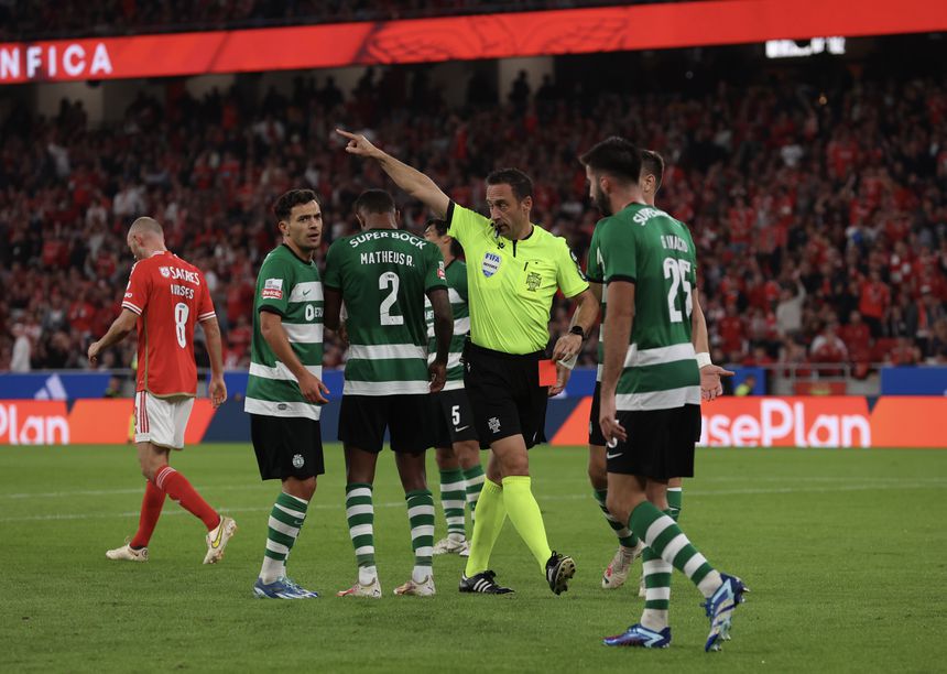 Gonçalo Inácio expulso logo a abrir a 2.ª parte do Benfica-Sporting (vídeo)