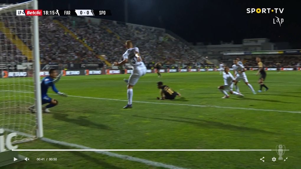 Gonçalo Silva cortou, junto à baliza, o remate de Pedro Gonçalves com o braço, foi expulso e, na marcação da grande penalidade, Viktor Gyokeres não perdoou, dando vantagem ao Sporting em Faro.