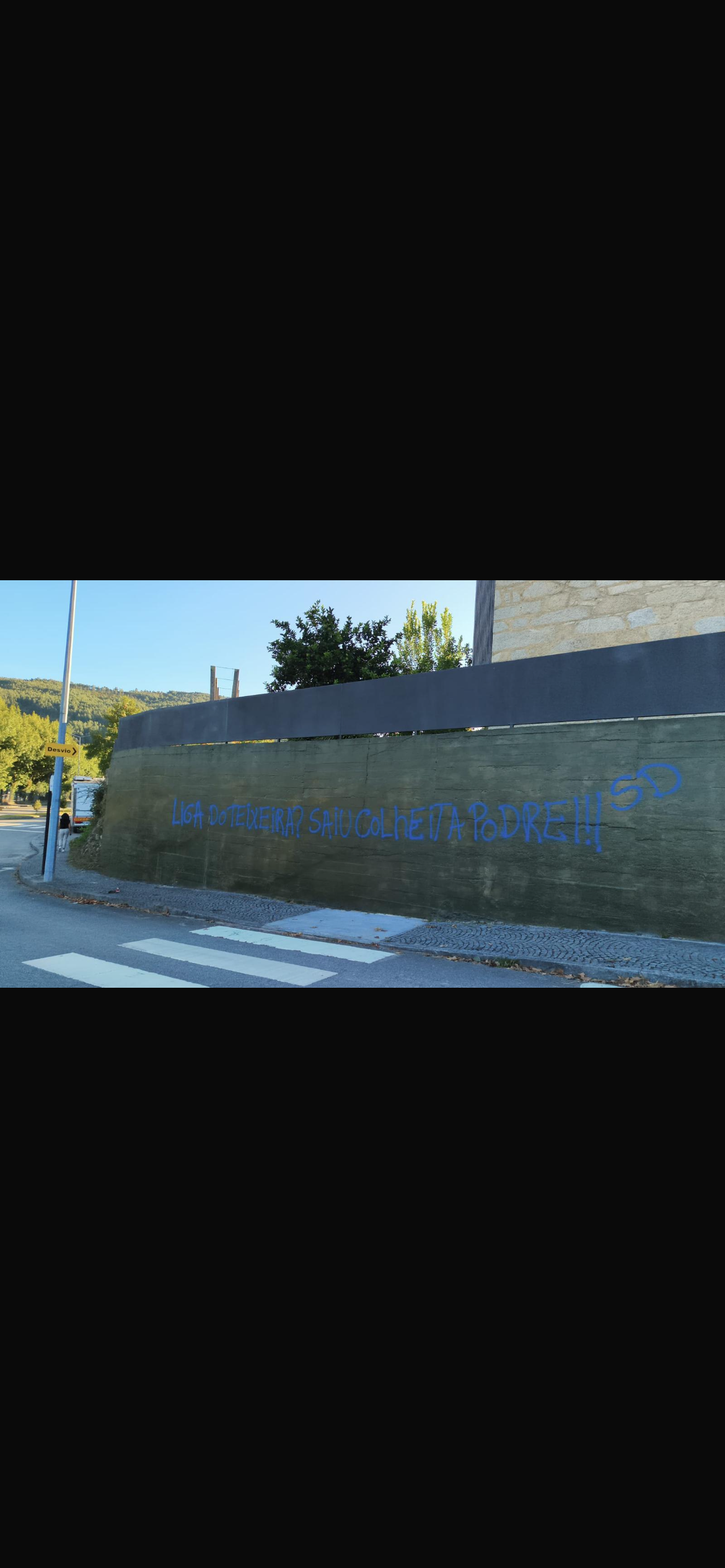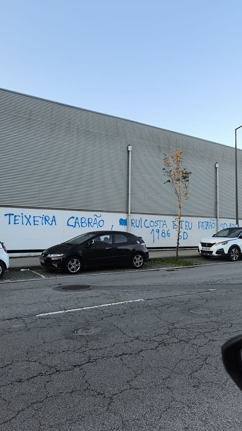 Os grafítis, pintados a azul e identificados com a sigla SD, habitualmente associada aos Super Dragões, principal claque do FC Porto, atacam sobretudo o presidente da Liga, Reinaldo Teixeira, inclusivamente com associações ao Benfica e a Rui Costa.