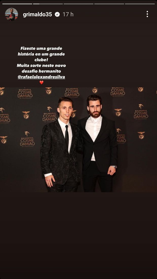 Depois da onda de mensagens direcionadas para Rafa, vindas de colegas e ex-colegas do Benfica, também Grimaldo recorreu às redes sociais para deixar palavras de apreço ao número 27 das águias.