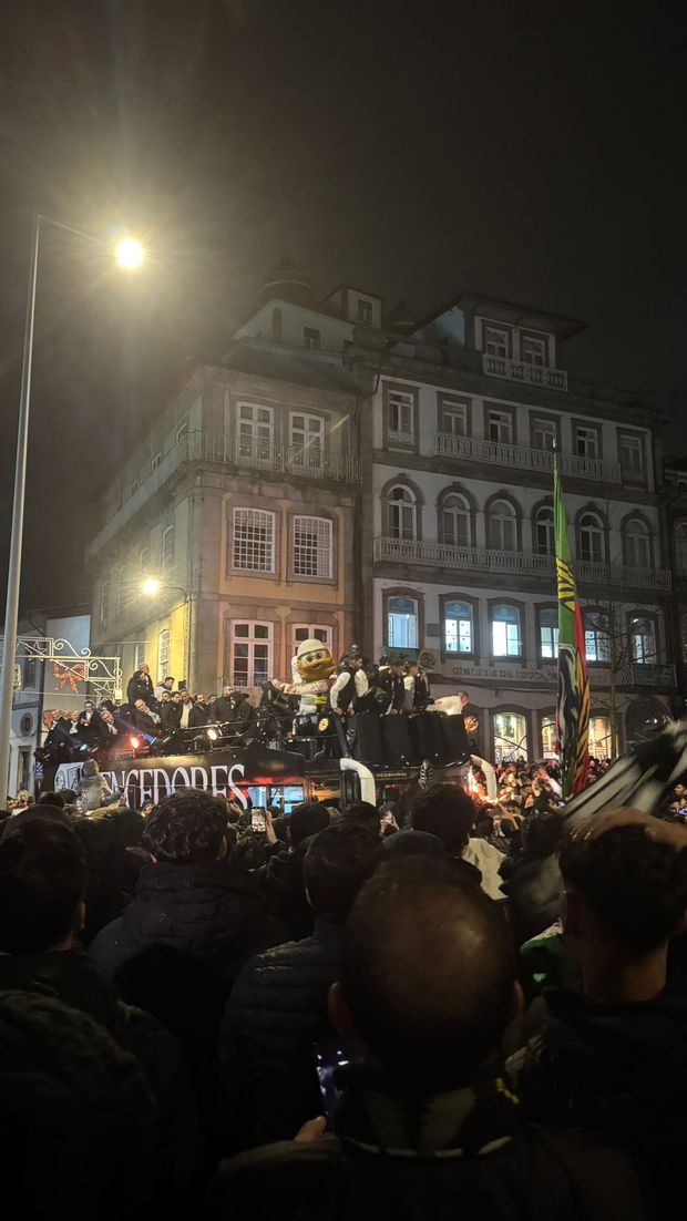 No Largo do Toural, ponto nevrálgico da vida vimaranense, o jogo que eternizou os comandados de Luís Pinto em Leiria foi tema dominante nas conversas de rua. Não se ouviram cânticos nem buzinas, mas não se falava de outro assunto, naturalmente. Pequenos grupos juntaram-se à porta dos cafés, trocaram impressões, reviveram os golos de Samu e Ndoye ou a monstruosa defesa de Charles ao cair do pano. Até a prestação da equipa de arbitragem foi ponto discutido nas ruas de Guimarães.