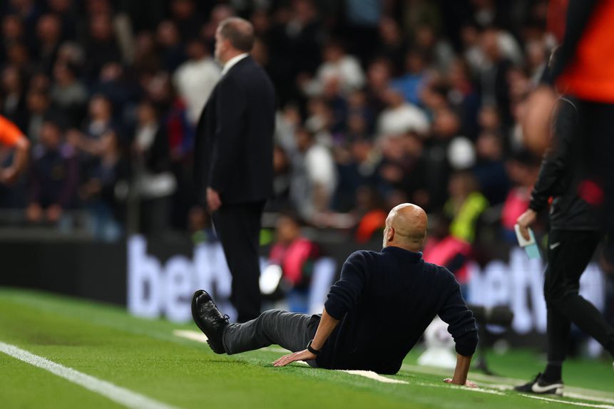 E foi naquela defesa que pode ter dado o título que o treinador teve uma reação que já corre mundo. Na defesa perante o sul-coreano Son, Guardiola levou as mãos à cabeça, colocou-se de cócoras e acabou por cair para trás.