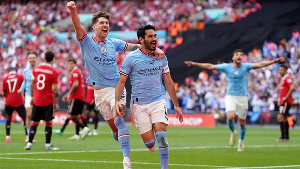 O médio internacional alemão Gundogan, que já havia apontado aos 13 segundos, para o Man. City, o tento inaugural (1-0) da final da FA Cup (Taça de Inglaterra), frente o rival da cidade, Man. United, voltou a recolocar os tricampeões de Inglaterra na frente do jogo (2-1), em curso no Estádio de Wembley (Londres) na tarde deste sábado, aos 51' (2-1), já após Bruno Fernandes ter, de penálti, igualado para o United (1-1), aos 33'.