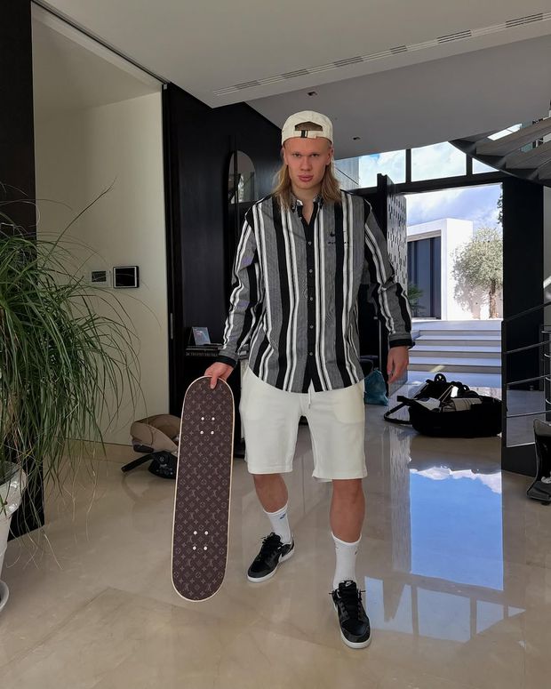 Erling Haaland, a recuperar de lesão, fez-se fotografar sem o equipamento do Manchester City mas pronto para uma volta de skate.