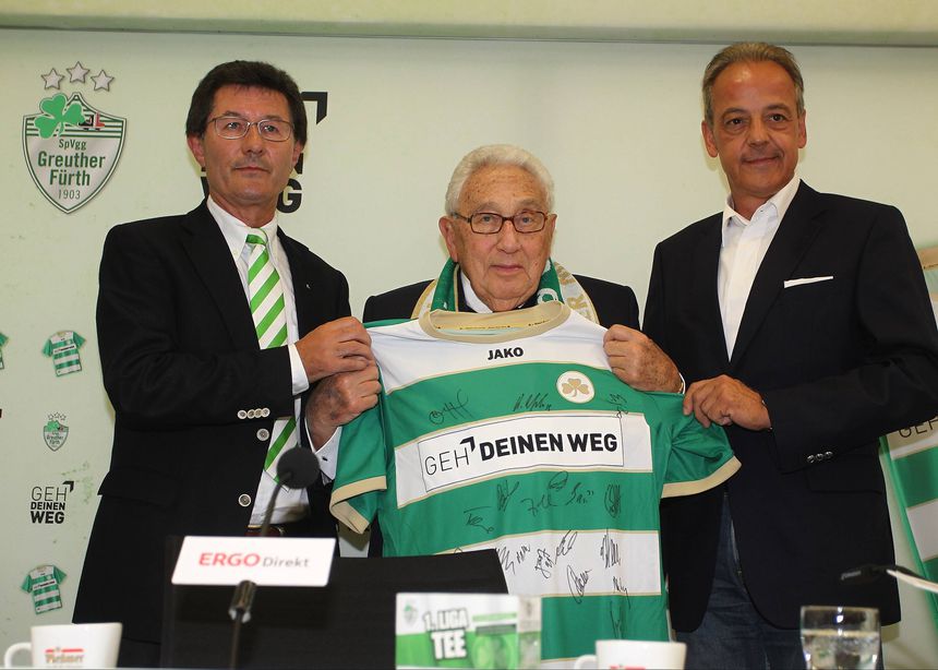 Mas Henry Kissinger também foi um apaixonado adepto do futebol, que aprendeu a amar na Alemanha, onde nasceu em 1923, em Furth. Filho de uma família judia, que lhe deu o nome de Heinz Alfred Kissinger, mais tarde americanizado para Henry Kissinger, quando em 1938 fugiu com os pais das perseguições nazis, o futuro secretário de Estado passou a infância e a juventude, fizesse chuva, neve ou sol, a ver os jogos do Spielvereinigung Greuther Furth. E nem mesmo o facto de ter emigrado para um país que fazia de outras modalidades o centro das atenções arrefeceu o seu gosto pelo futebol, de que viria a ser peça chave do desenvolvimento nos Estados Unidos.