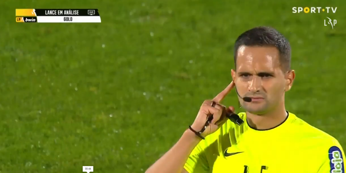 «O defesa número 6 pontapeia o avançado número 7 no calcanhar. Decisão final: retirar o cartão amarelo ao número 7 e assinalar penálti», pode ouvir-se no vídeo publicado pela Sport tv.