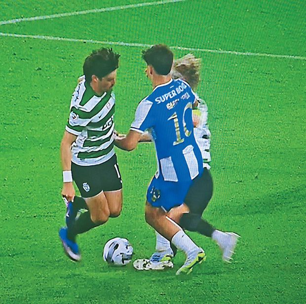 Era o que se costuma chamar de falta grosseira do jogador portista, que escapou a cartão vermelho, mas vai ser alvo de participação disciplinar dos leões ao Conselho de Disciplina da Federação Portuguesa de Futebol. O espanhol entrou muito duro sobre o dinamarquês que, consequência desse lance, teve de ser substituído ao minuto 50, cedendo o lugar a Daniel Bragança.