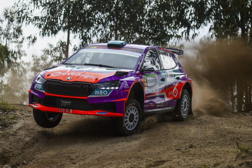 Armindo Araújo persegue Kris Meeke no Campeonato de Portugal de Ralis; foto campeonatoportugalderalis.pt