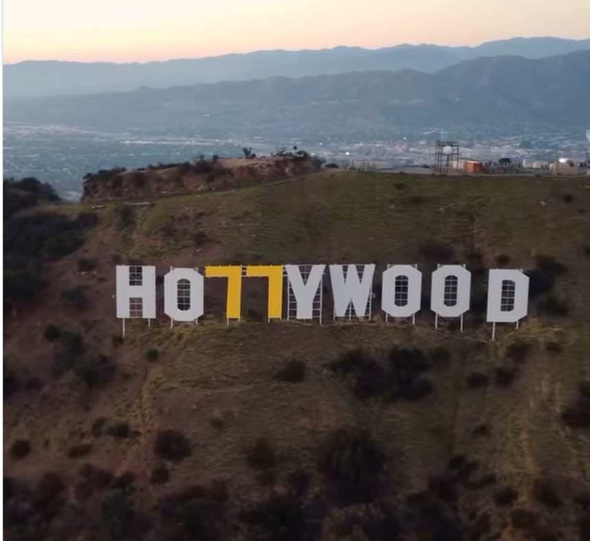 Originalmente, o enorme letreiro iluminado por 40 mil lâmpadas era apenas um cartaz de uma imobiliária que pretendia ser vista de todos os lados. Ao longo dos anos foi mudando, mas sempre impactante e, por exemplo, em janeiro de 1976 acordou transformado em HOLLYWeeD, num jogo de palavras para celebrar a descriminalização da canabis na Califórnia (weed, em inglês, significa erva), ou, em 1987, alguém cobriu o segundo L, transformando-o temporariamente em HOLYWOOD, durante a visita do Papa João Paulo II. (holy, em inglês, significa sagrado).