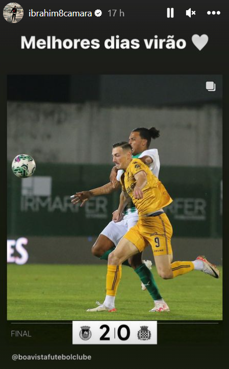 O médio Ibrahima Camará deixou uma mensagem de incentivo nas redes sociais, após o deslize do Boavista diante do Rio Ave (0-2), este domingo, para a 10.ª jornada da Liga.