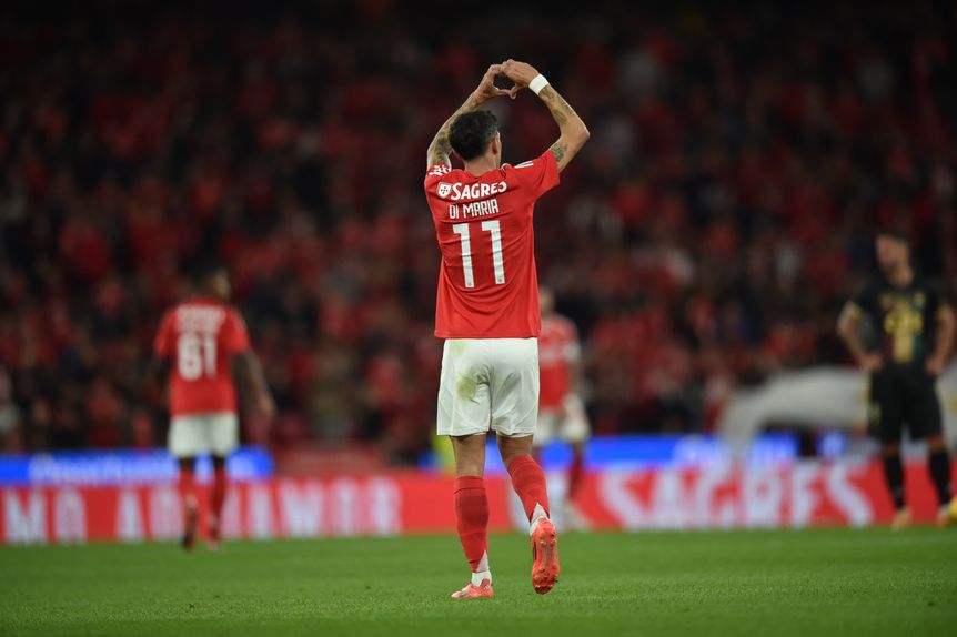 Di María está a ser a figura do embate entre Benfica e Estrela da Amadora, com três golos nos primeiros 20 minutos de jogo. Foto: Miguel Nunes.