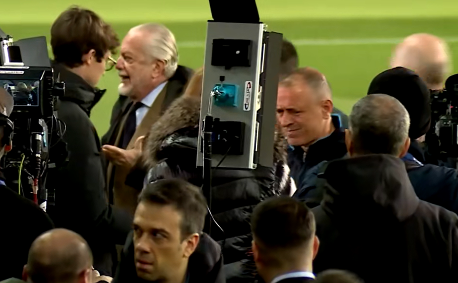 Aurelio De Laurentiis puxou o seu jogador e acabaria por empurrar um jornalista