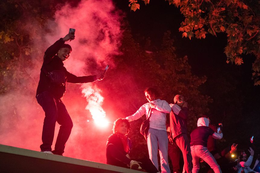 Caos total en París: turbas de aficionados del PSG cortan el tráfico y disparan fuegos artificiales contra la policía. pic.twitter.com/KphUM2NH6r