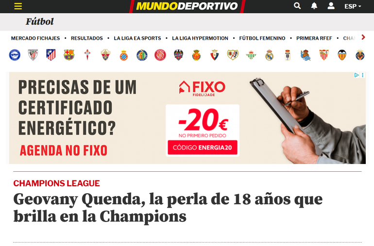 A entrada de Quenda teve também efeitos coletivos. Com uma nota fundamental: o Sporting marca mais do dobro com ele em campo. Com uma média de 45 minutos por jogo, o jovem leão duplica a média de golos por 90 minutos: sem ele são 1,71 golos marcados, com ele passa para 3,42 golos. O ponto alto foi esta exibição diante do Kairat que deixou a Europa rendida. Não só em Espanha, com destaque para a Marca e o Mundo Deportivo. O primeiro diz que Quenda «faz o que quer» e deu um «recital» na primeira jornada da prova. O segundo diário espanhol vai mais longe e destaca o Sporting, uma verdadeira «máquina de gerar talento» reforçando a contratação do Chelsea no prodígio português.