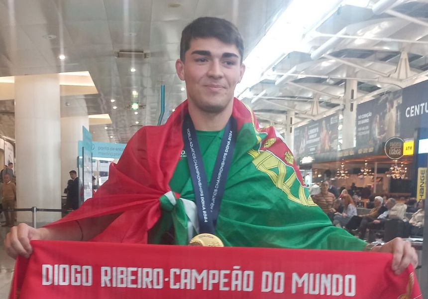 Diogo Ribeiro chegou esta segunda-feira a Lisboa com as medalhas de campeão mundial em 50 e 100 metros mariposa: