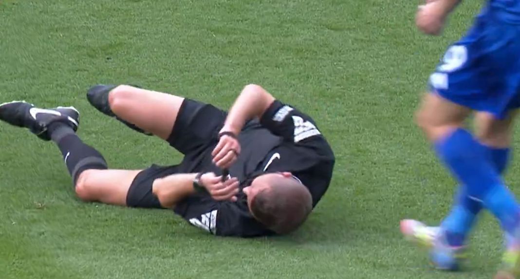 Ora, então, o resumo: o árbitro do Leicester x Southampton foi atropelado pelo Jordan Ayew, caiu no relvado, o Jamie Vardy foi lá, apitou no apito e saiu, depois as equipas médicas entraram em campo, levaram o árbitro para dentro e este foi substituído... na sua estreia na… pic.twitter.com/snUOoQwIxH