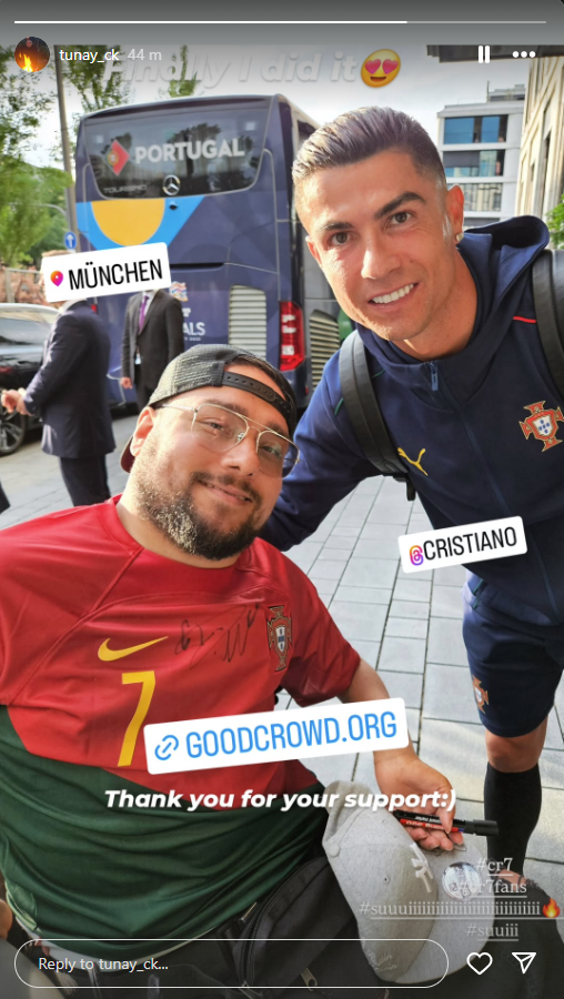 As barreiras superadas em nome da inclusão chamaram à atenção da UEFA que proporcionou um encontro entre Tunay e Cristiano Ronaldo e outros elementos da equipa das Quinas: «Estou muito contente, não consigo acreditar, desde criança que o apoio, é o meu jogador favorito e o melhor do mundo. Vou estar no estádio e espero que ganhem contra a Alemanha, espero que passem porque tenho bilhetes para a final.»