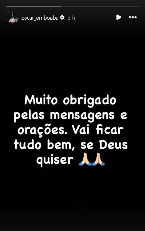 Eis a mensagem de Oscar nas redes sociais