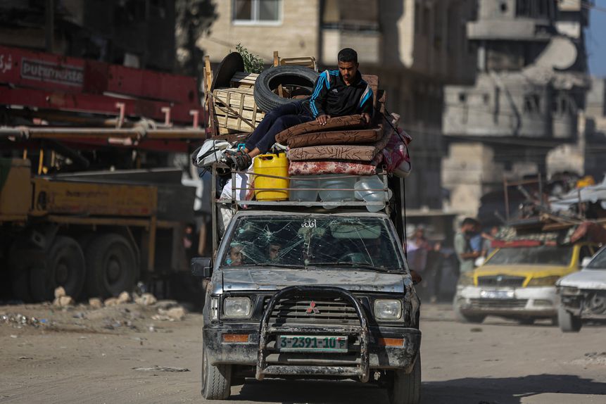 O exército israelita designou a estrada costeira de al-Rashid como a única rota permitida para a evacuação de civis. Muitos relataram congestionamentos graves, filas intermináveis de carros e camiões e longas demoras, com famílias retidas na berma da estrada enquanto os ataques aéreos continuam.