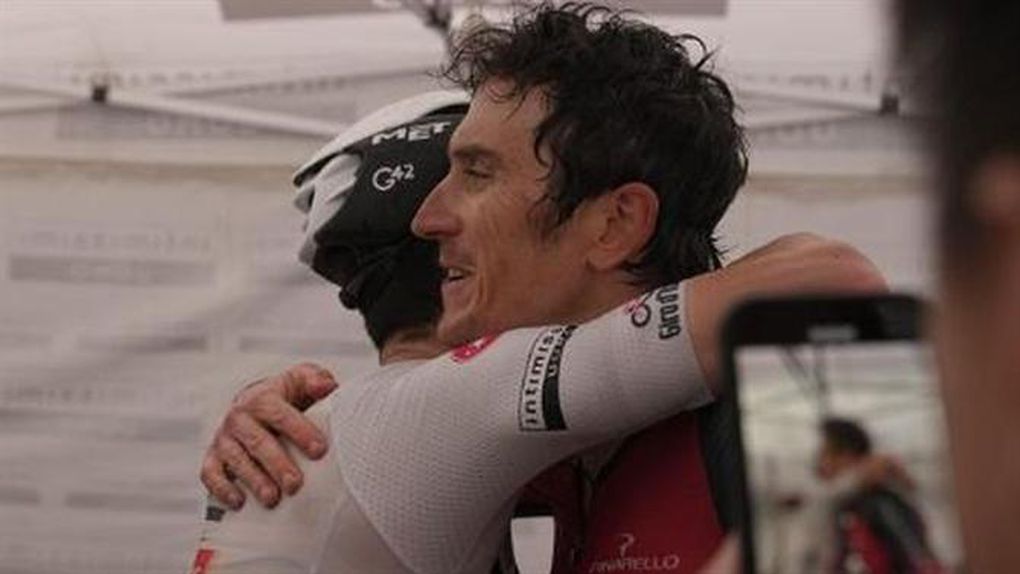Vencedor do Tour em 2018 e desde esta terça-feira 'maglia rosa' (líder) do Giro, o galês Geraint Thomas, de 36 anos (completa 37 na quinta-feira, dia 25), que discutiu a vitória na 16.ª etapa do Giro ao sprint com o português João Almeida, de 24 anos (UAE-Team Emirates) demonstrou o seu desportivismo para com o corredor luso, vencedor da tirada de 203 km entre Sabbio Chiese e Monte Bondone, com um abraço, entre dois campeões das duas rodas, que se respeitam... e que ocupam agora os dois primeiros lugares da classificação geral da Volta a Itália, com Almeida a 18 segundos de distância do britânico.