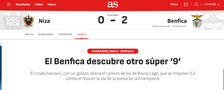 O avançado croata contratado esta época pelas águias inaugurou o marcador e protagonizou uma exibição que impressionou. «O Benfica descobre outro super 9», escreve, por exemplo, o AS.
