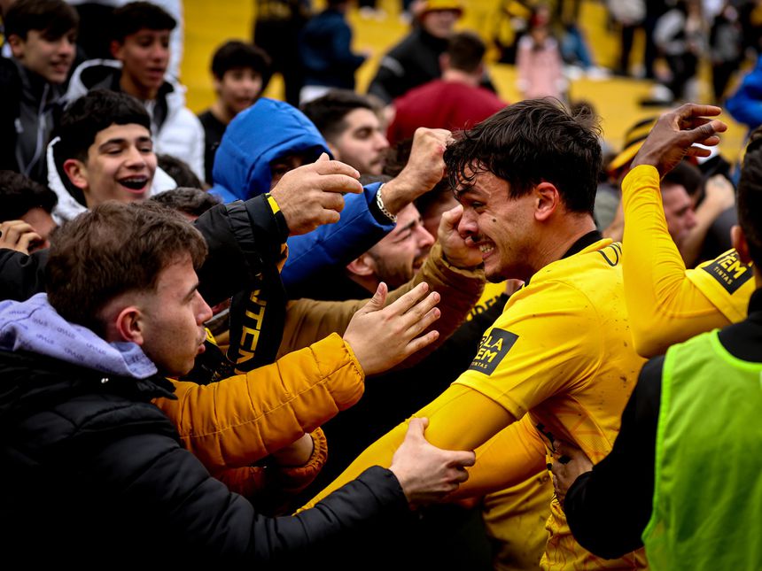 Jogadores e adeptos em momento de perfeita comunhão. (Foto: Lusitânia de Lourosa)