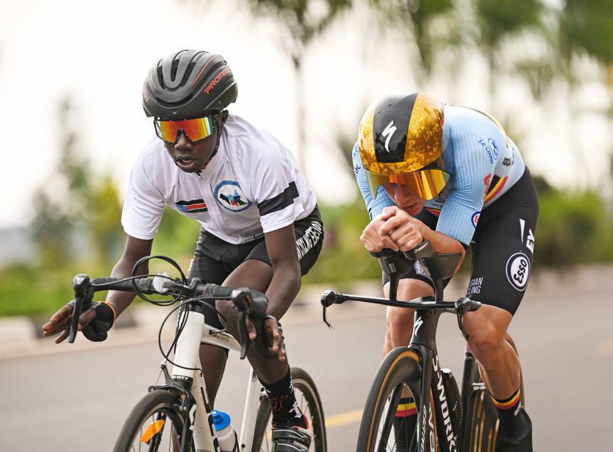 No extremo oposto da sofisticação e dos recursos económicos, no contrarrelógio de elites masculinos dos primeiros Mundiais realizados em África, esteve Jalal Edward em representação do Sudão do Sul. O corredor, de 24 anos, classificou-se na 54.ª e última posição, demorando mais 43.19 minutos do que Remco Evenepoel, quase o dobro do tempo averbado pelo tricampeão mundial, a irrisória média de 26 km/h.