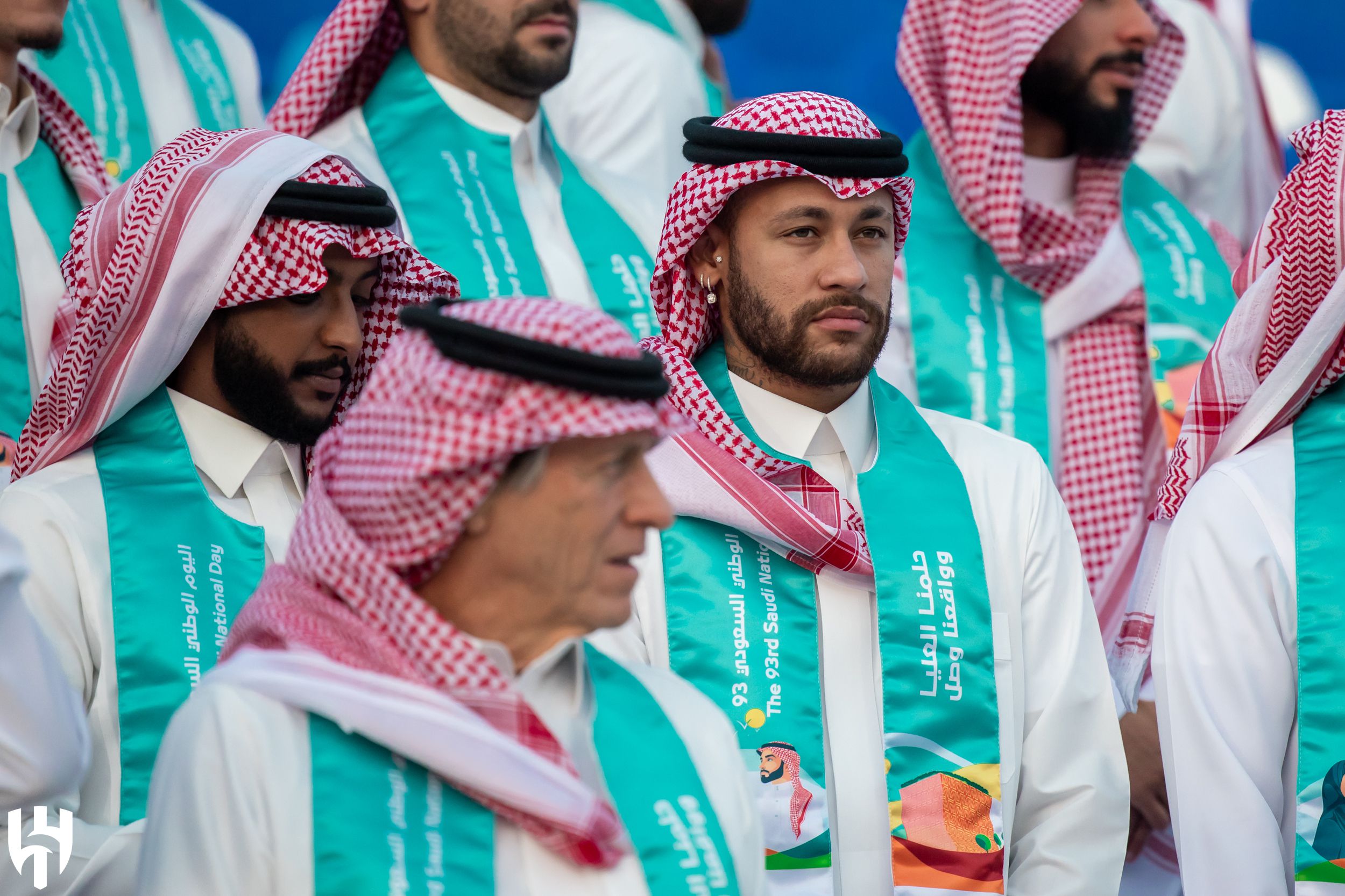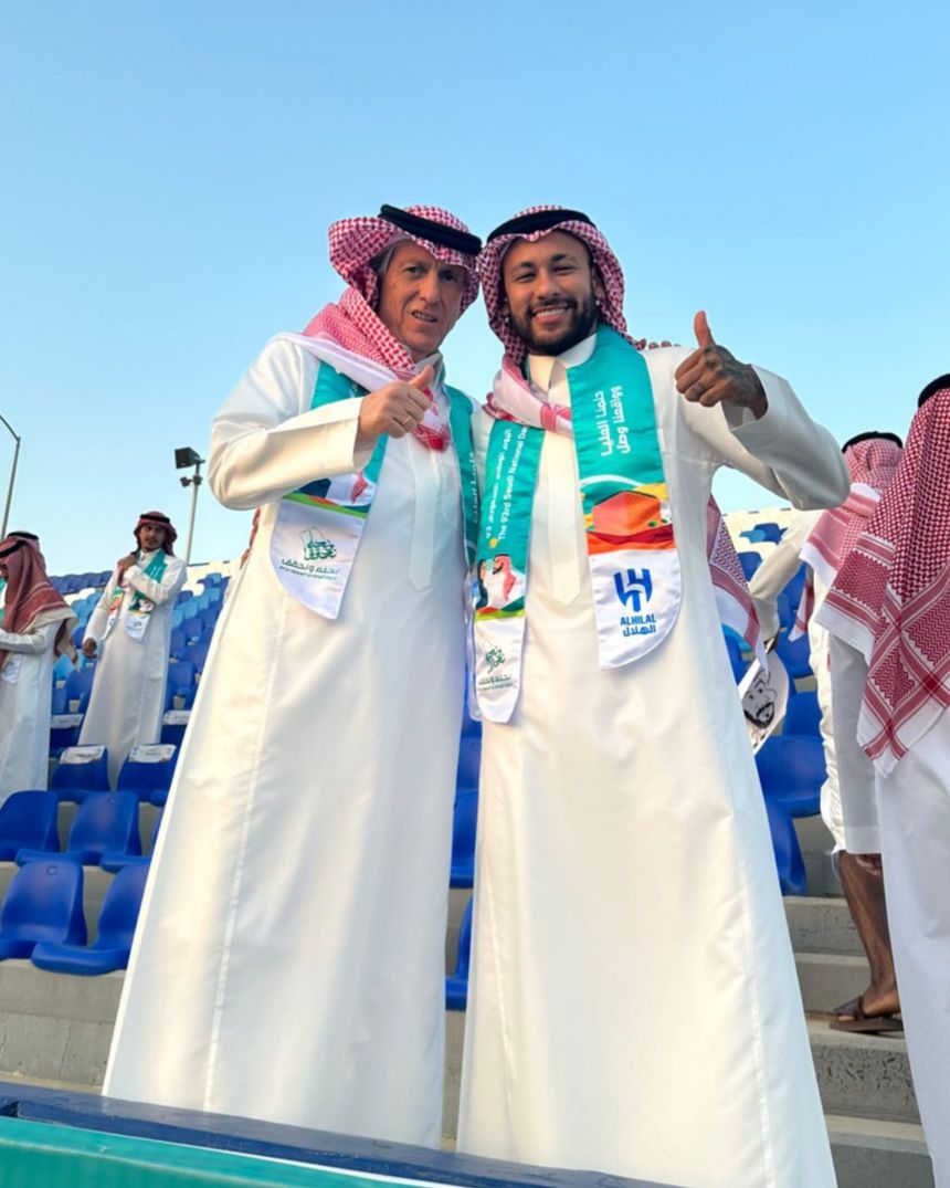 Jorge Jesus, Neymar e Rúben Neves, entre muitos outros, como nunca os viu... Os elementos do plantel e da equipa técnica do Al Hilal juntaram-se este sábado às celebrações do Dia Nacional Saudita, vestindo-se a rigor com os trajes tradicionais do país.