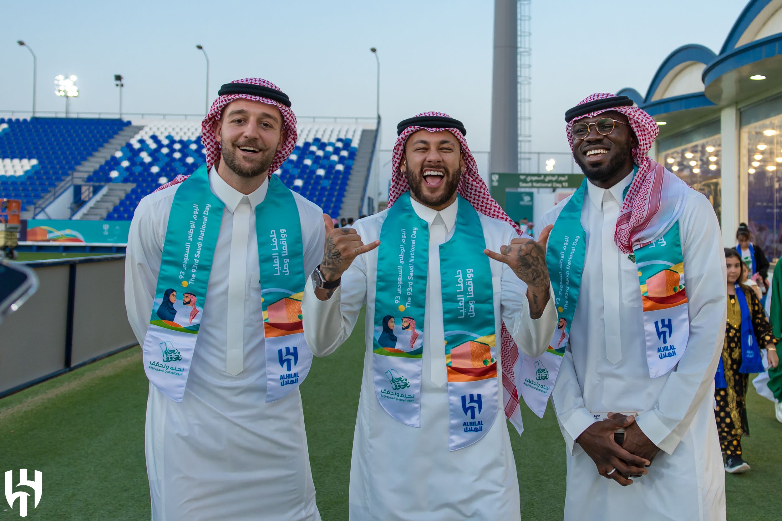 Plantel e técnicos do Al Hilal juntaram-se este sábado à celebração do feriado nacional do país. A 23 de setembro de 1932, o rei Abdulaziz declarou a unificação de todas as partes do reino sob o nome de Arábia Saudita