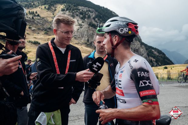 - Na etapa seguinte, Jay Vine vence em fuga e Juan Ayuso perde sete minutos para o grupo dos candidatos, abdicando da coliderança da equipa. Mas no dia seguinte, entra em fuga e ganha a etapa. Como é que viu essa atitude competitiva do companheiro de equipa espanhol?