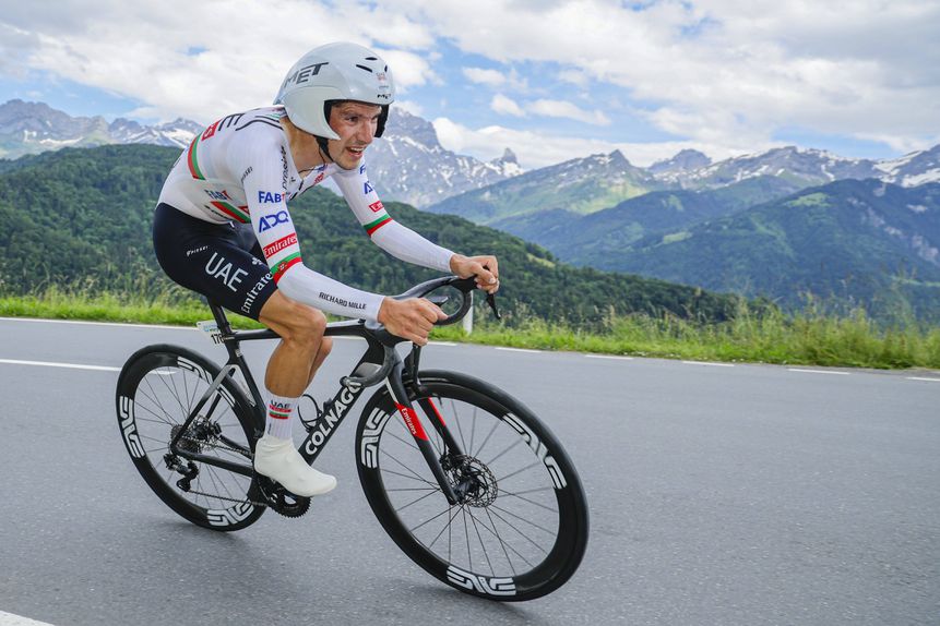 Almeida, completou o percurso em 33.24 minutos, mas não conseguiu anular a desvantagem de 31 segundos para o companheiro de equipa na UAE Emirates, com que partiu para a ligação entre Aigle e Villars-sur-Ollon, que incluiu uma subida final de 10 quilómetros, terminando a prova a 22 segundos do britânico.