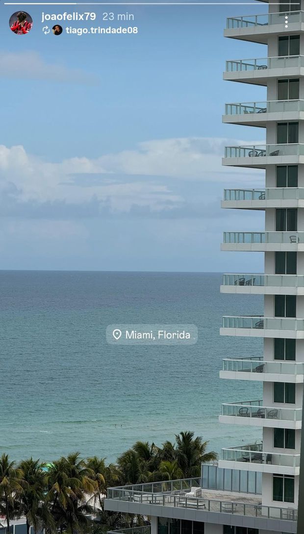 João Félix aproveita uns dias de descanso em Miami, a 329 quilómetros de distância de Tampa, quartel-general das águias na preparação para o Mundial de Clubes. Ainda assim, as duas partes podem reunir já na segunda-feira, data de estreia do Benfica na fase grupos diante do Boca Juniors, no Hard Rock Stadium, casa dos Miami Dolphins.