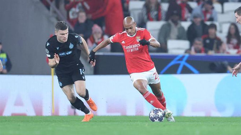 João Mário marcou, esta terça-feira, o quarto dos cinco golos com que o Benfica goleou o Club Brugge (5-1), no Estádio da Luz, para carimbar a passagem aos quartos de final da Liga dos Campeões.