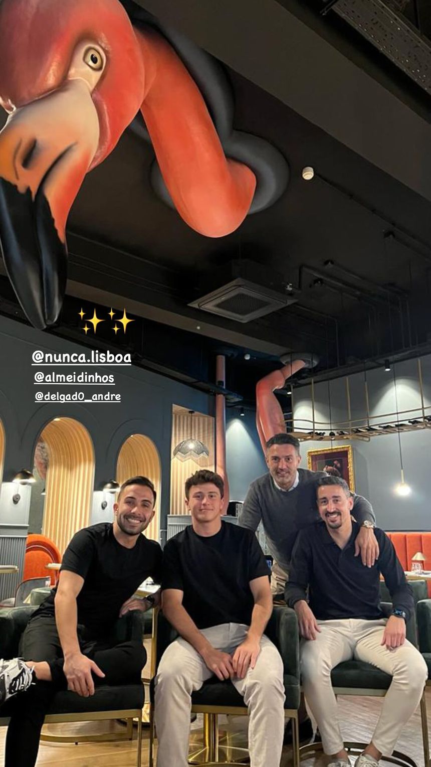 João Neves partilhou, na sua conta pessoal do Instagram, uma fotografia na companhia de André Almeida. A fotografia foi captada no restaurante do antigo capitão do Benfica.