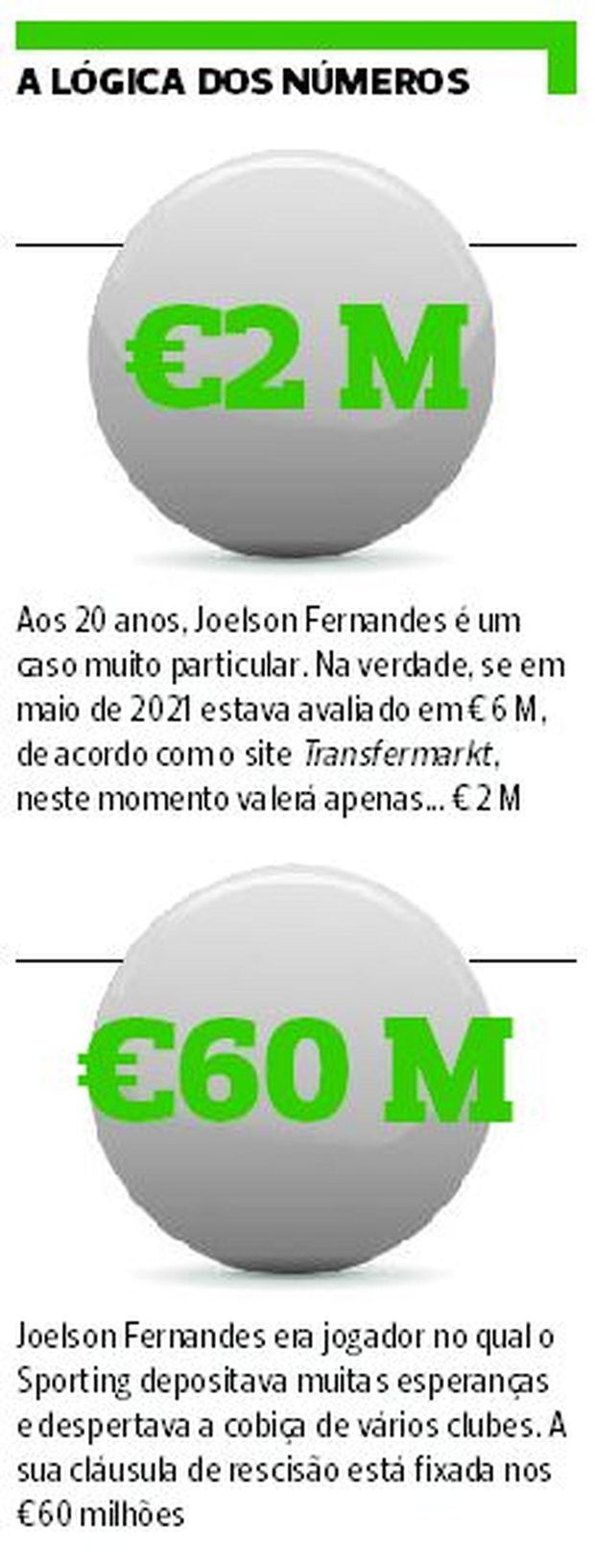 Com contrato com o Sporting válido até 2025, os últimos indicadores apontam para o facto de Rúben Amorim, treinador da equipa principal, voltar a não contar com Joelson Fernandes, extremo de 20 anos, na próxima época desportiva. Nesse sentido, o cenário de uma saída está em aberto, ainda que, em primeira instância, se possa concluir que o jogador não está disposto para deixar Alvalade a qualquer custo.