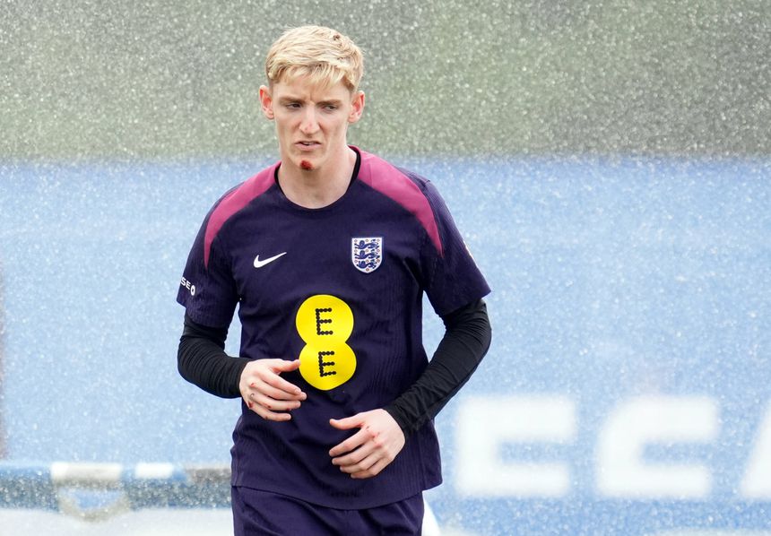 Apesar do susto, Anthony Gordon treinou sem limitações e estará apto para o jogo de domingo frente à Eslováquia, a contar para os oitavos de final do Euro 2024.