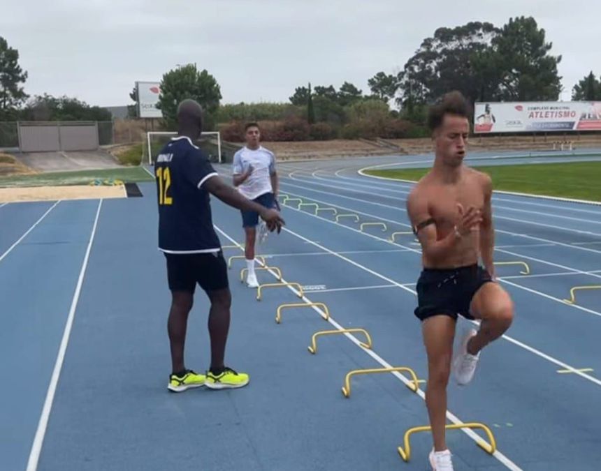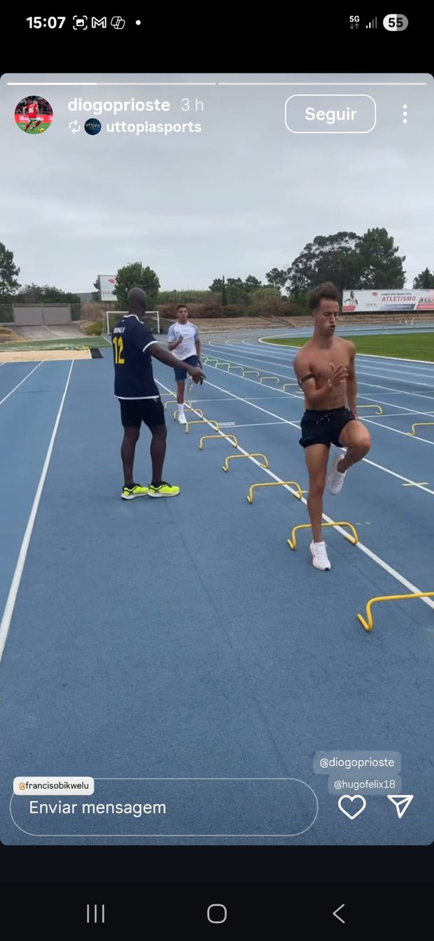 Os jovens médios do Benfica, Hugo Félix e Diogo Prioste, realizaram um treino com o antigo atleta Francis Obikwelu, a grande estrela da velocidade em Portugal.