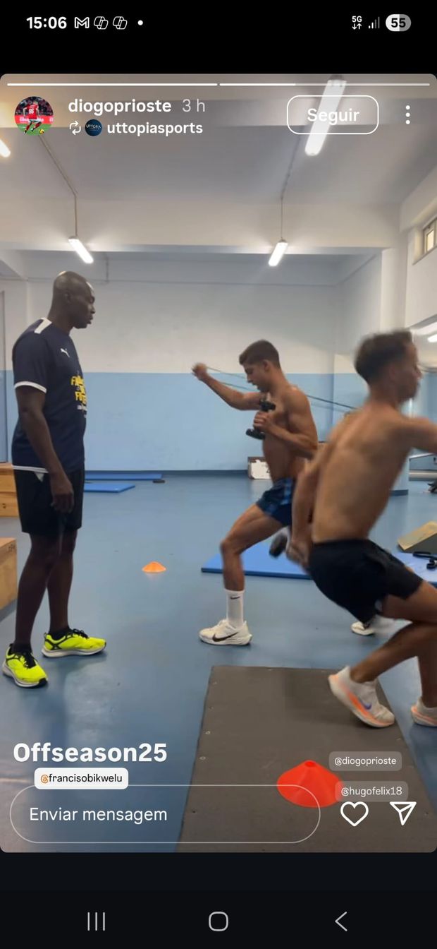 Prioste, de 21 anos, partilhou na página de Instagram duas fotos da sessão de trabalho que ele e companheiro de equipa realizaram ao comando do antigo atleta, hoje em dia com 46 anos.