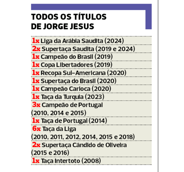 Para o experiente treinador português, que em julho completa 70 anos, este é o 22.º título da já longa carreira, sendo o campeonato saudita o terceiro que JJ conquista, depois de Portugal (três vezes campeão pelo Benfica) e Brasil (venceu o Brasileirão com o Flamengo).
