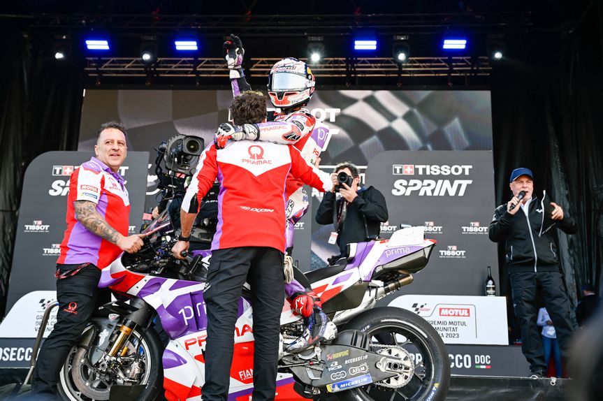 O espanhol da Pramac Ducati aproveitou um erro de Brad Binder a seis voltas do fim para passar para a frente e confirmou que as corridas curtas de sábado são mesmo a sua especialidade, com o nono triunfo esta época. Pecco Bagnaia, da Ducati de fábrica, terminou no 5.º posto, e viu a sua vantagem para o grande rival encurtar para 14 pontos. É essa a vantagem que terá de defender amanhã.